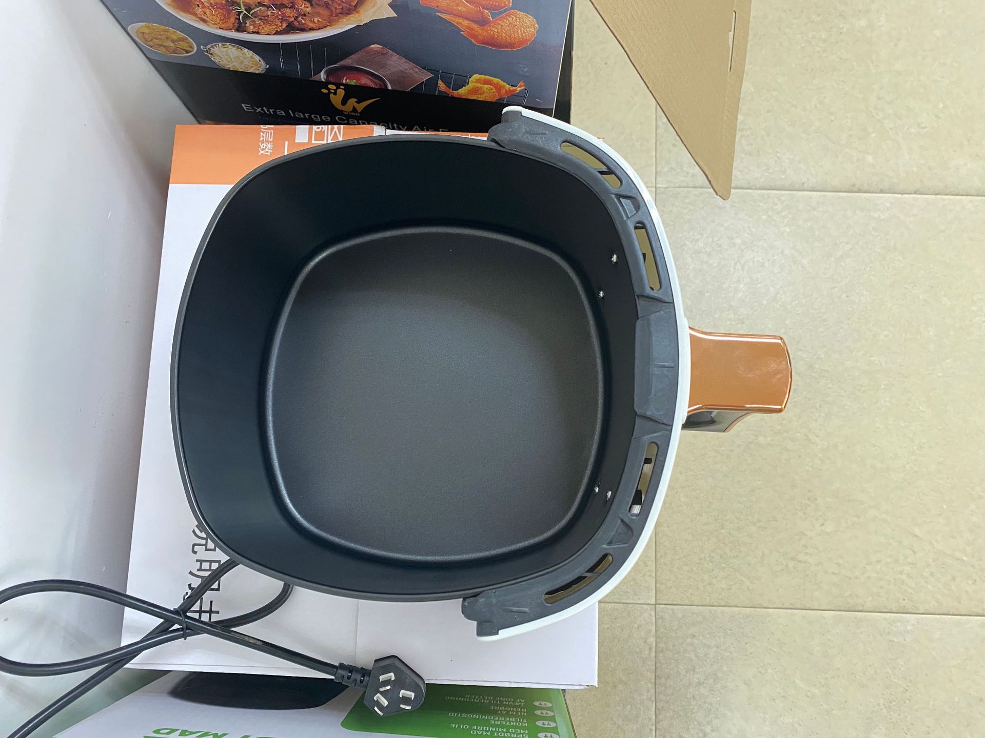 2. The air replaces the hot oil, utilizes the 360 ° convection of the hot air, and deep-fried through high-speed hot air, without oil frying pan, healthy food.
